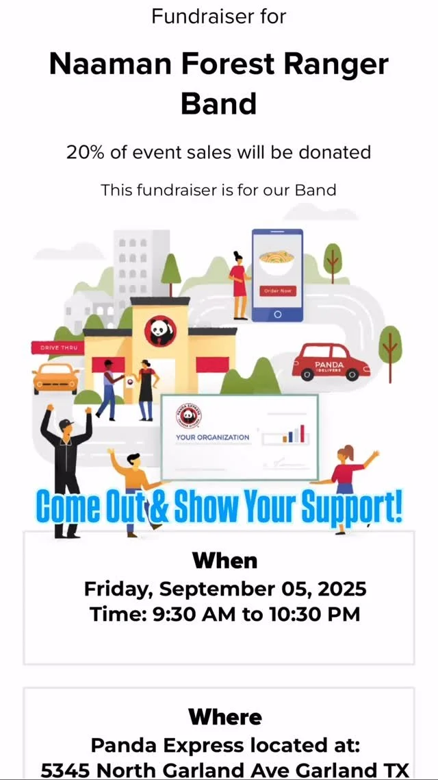 As long as your child is in the band, you are a Naaman Forest Band Booster member! The support of the band booster is integral in providing your children with the most optimal band experience. If you are interested in volunteering or serving on the booster board, contact our booster board.